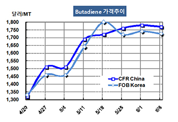 FOB Korea 1725달러로 15달러 하락 … 합성고무 정기보수로 과잉