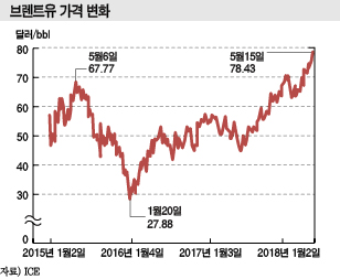 국제유가는 2018년 들어 60-70달러 수준에서 등락했으나 팔레스타인 문제가 불거지면서 77-78달러 수준으로 올라섰고, 일부에서는 100달러를 넘어설 가능성까지 제기하고 있다.