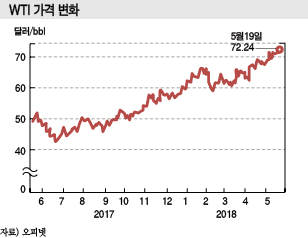 국제유가는 2017년 배럴당 45-55달러를 유지했으나 2018년 들어 60달러대로 상승한데 이어 80달러를 넘어설 가능성이 제기되고 있다.