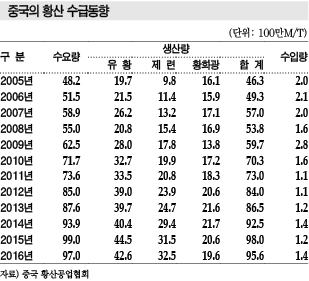 원료인 유황 수입량은 2016년 1220만톤으로 글로벌 수요 6250만톤의 19%에 달했다.