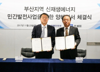 KCC가 부산경제진흥원과 손잡고 부산지방조달청 청사와 비축창고 2곳에 발전용량 744kWp(최대전력)의 태양광발전시설을 건설한다. <화학저널 2018/07/13> |