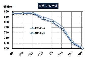 CFR FE Asia 655달러로 35달러 급락 … 위안화 약세도 한몫