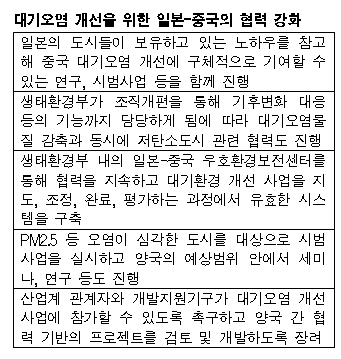 표, 그래프: <대기오염 개선을 위한 일본-중국의 협력 강화> <화학저널 2018/08/17> |