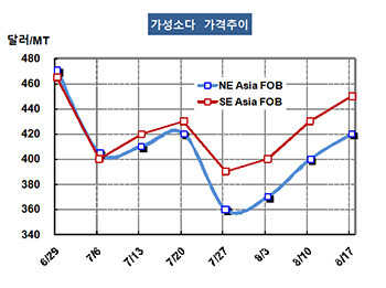 FOB NE Asia 420달러로 20달러 상승 … 중국 내수가격 강세로