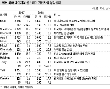 일본 화학기업들은 경기변동에 좌우되지 않고 중장기적으로 지속적인 성장이 가능한 사업구조를 구축하기 위해 헬스케어 사업에 힘을 기울이고 있다.
