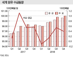 2018년에는 비OPEC 산유국의 원유 생산량이 2017년에 비해 일일 평균 111만배럴 증가하는 가운데 수요가 129만배럴 확대될 것으로 예측되고 있다.