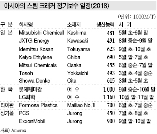 LPG는 일반적으로 여름철 수요 감소로 공급과잉이 발생함에 따라 스팀 크래커의 원료로 나프타를 대체하는 움직임이 확대되나 2017년에는 가격이 강세를 유지해 LPG 전환이 이루어지지 않았다.
