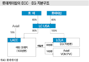 LACC 및 LCLA의 투자기업은 롯데그룹 60%, 롯데티탄 40%를 투자해 설립한 LC USA로, LC USA가 에탄 크래커 합작기업인 LACC에 90%, EG 생산기업인 LCLA에 100% 투자하는 형태이다.