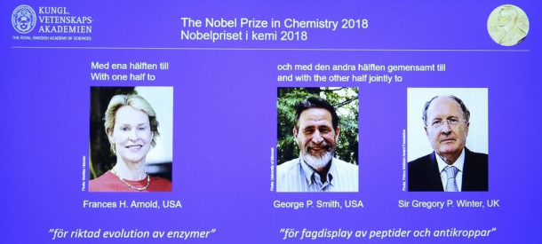 2018년 노벨화학상의 영예는 진화의 힘을 활용해 항체와 효소를 연구개발(R&D)함으로써 인류에 공헌한 미국과 영국 과학자들에게 돌아갔다.