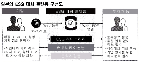 「ESG 대화 플랫폼」은 기업이 웹상에 일정서식에 따라 등록한 환경정보를 투자가가 열람할 수 있는 시스템으로 환경성이 구축을 추진하고 있다.