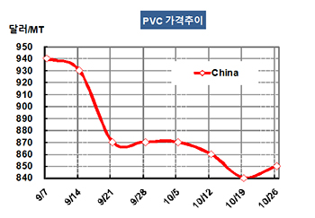 CFR China 850달러로 10달러 올라 … 중국 내수가격은 하락