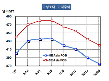 FOB NE Asia 375달러로 15달러 하락 … 일본 수출 적극화도 영향