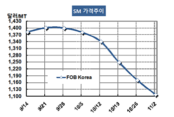 FOB Korea 1106달러로 64달러 폭락 … 마진 404달러 선