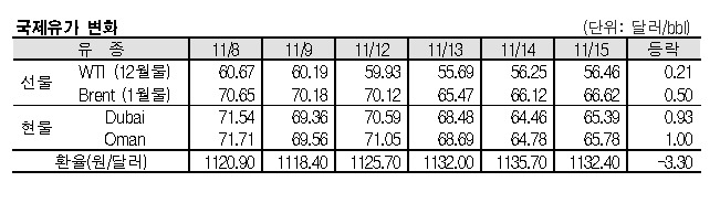 11월15일 국제유가는 주요 산유국의 감산 가능성 등으로 상승했다.