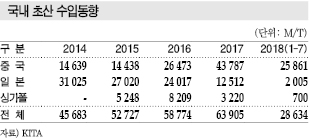 국내수요가 2014년 43만4455톤, 2015년 41만7915톤, 2016년 43만3342톤, 2017년 44만2915톤으로 증감을 반복하고 있는 가운데 수입량이 2014년 4만5683톤에서 2015년 5만2727톤, 2016년 5만8774톤, 2017년 6만3905톤으로 꾸준히 증가했기 때문이다.