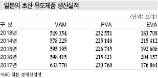 일본기업은 높은 기술력이 요구되는 편광판용 PVA 필름 용도에서 호조를 보이고 있다.