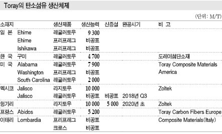 도레이는 1971년 탄소섬유를 사업화했으며 최근까지도 시장 개척 및 성능 향상을 위해 노력하고 있다.