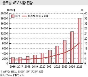 특히, 2016년 이후에는 연평균 26.6% 성장해 2025년 약 1800만대에 달할 것으로 예측되고 있다.