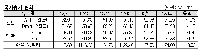 12월14일 국제유가는 위험자산에 대한 투자심리가 악화된 영향으로 하락했다.