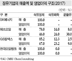 정유기업 사이에서도 수익률 차이가 나는 것은 사업구조에 차이가 있기 때문으로, 여러 요인에 따라 부침이 결정되나 석유화학 매출비중이 높은 에쓰오일과 GS칼텍스가 상대적으로 안정성을 확보하고 있는 것으로 평가되고 있다.