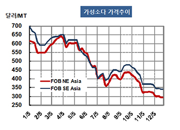 FOB NE Asia 295달러로 5달러 하락 … 중국 내수가격 폭락