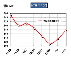 MTBE(Methyl tert-Butyl Ether)는 폭등국면으로 전환되고 있다.