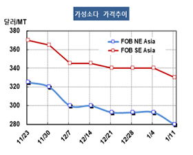 표, 그래프: <가성소다 가격추이> <화학저널 2019/01/18> |