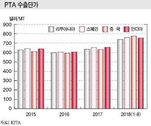 10월 말에는 PTA 가격이 900달러대 후반으로 떨어졌으나 2018년 전체적으로 양호한 마진을 남긴 것으로 추정되고 있다.