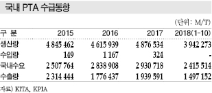 2018년에는 반동현상이 일어나 10% 이상을 회복함으로써 가을철까지 PTA 수요 신장을 견인한 것으로 파악된다.