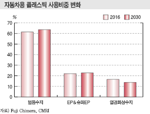 자동차용 EP 및 슈퍼EP 수요는 258만톤으로 2030년에도 투입비중이 23%에 머물 것으로 예측되고 있다.