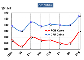 FOB Korea 840달러로 20달러 올라 … 원료가격 상승도 영향