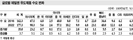 세계 에틸렌 유도제품 수요는 아시아가 증가세를 견인할 것으로 예상된다.