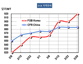 표, 그래프: <O-X 가격추이> <화학저널 2019/04/04> |