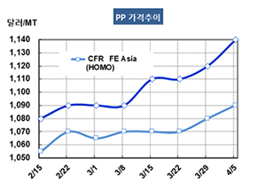 PP(Polypropylene)는 소폭이나마 상승했다.