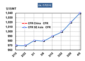 표, 그래프: <PA 가격추이> <화학저널 2019/04/11> |