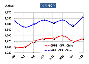 PS(Polystyrene)는 고충격 그레이드가 급등했다.