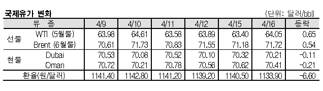 반면, 러시아의 증산 가능성 확대 및 미국 달러화 강세는 국제유가 상승폭을 제한했다.