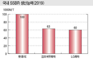 국내에서는 이미 금호석유화학이 2013년부터 SSBR 6만3000톤 플랜트를 가동하고 있으며, LG화학도 6만톤 수준을 생산하고 있어 롯데케미칼 진출을 통해 치열한 3파전을 벌일 것으로 예상됐다.