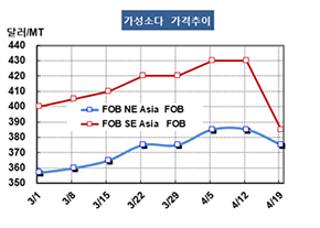 표, 그래프: <가성소다 가격추이> <화학저널 2019/04/26> |