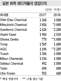표, 그래프: <일본 화학 메이저들의 영업이익>