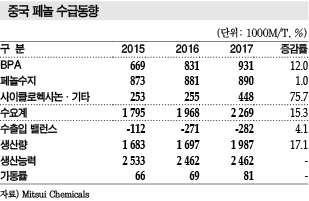 전체 수요의 85% 이상을 차지하고 있는 BPA 생산이 호조를 보이고 있는 것도 크게 작용했다.