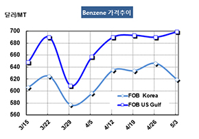벤젠(Benzene)은 600달러대 초반으로 급락했다.