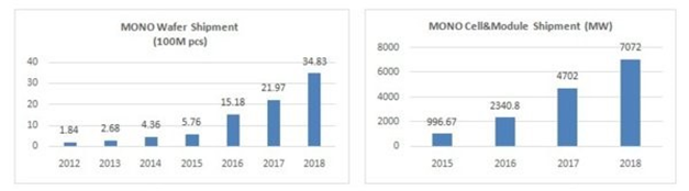 중국 LONGi가 태양전지용 실리콘(Silicone) 잉곳·웨이퍼 및 셀, 모듈 생산능력을 대폭 확대한다. LONGi는 2018년 단결정 실리콘 웨이퍼 해외 출하량이 전년대비 59% 증가한 34.83억개를, 태양전지와 모듈 출하량도 50% 증가한 7.072GW를 기록했다. <화학저널 2019/05/10> |