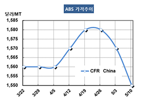 표, 그래프: <ABS 가격추이> <화학저널 2019/05/15> |