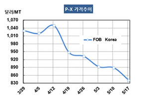 표, 그래프: <P-X 가격추이> <화학저널 2019/05/23> |