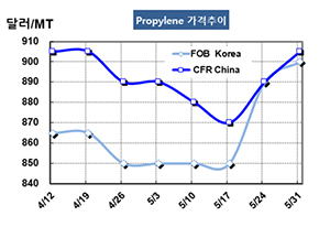 프로필렌(Propylene)은 900달러로 올라섰다.