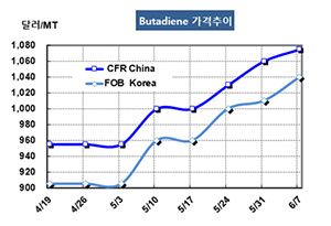 부타디엔(Butadiene)은 상승세가 커지고 있다.