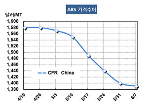 표, 그래프: <ABS 가격추이> <화학저널 2019/06/12> |