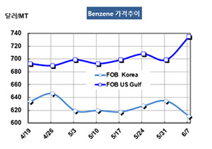 표, 그래프: <Benzene 가격추이> <화학저널 2019/06/12> |