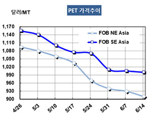 표, 그래프: <PET 가격추이> <화학저널 2019/06/20> |